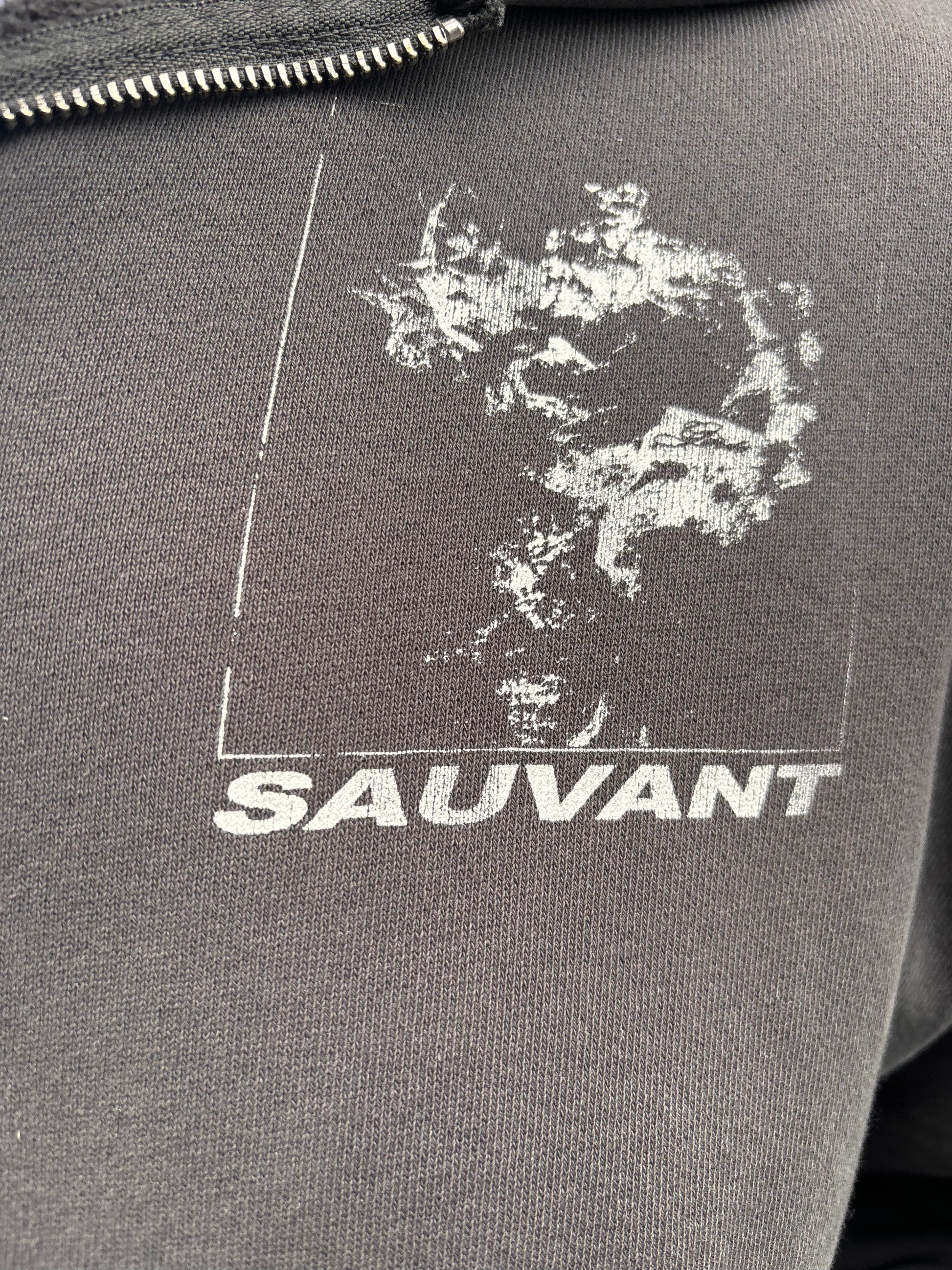 The model is 6"0 and 170 lbs. He is wearing a size L.