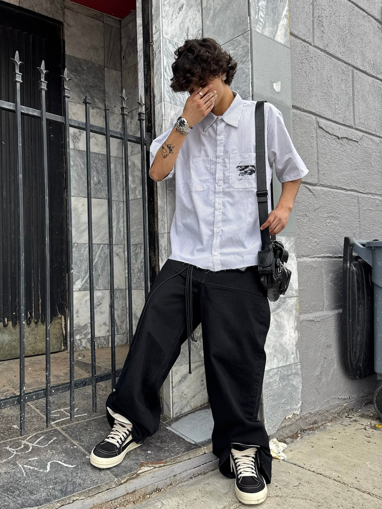 The model is 6"0 and 175 lbs. He is wearing a size L.