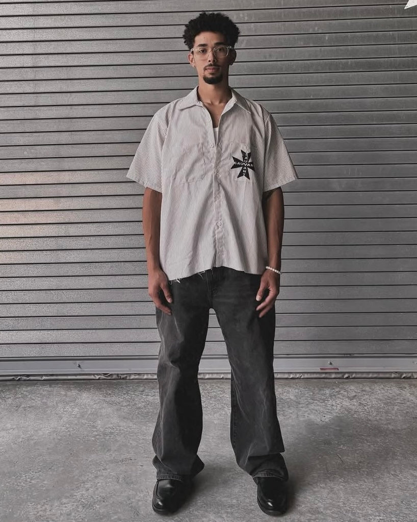 The model is 6"0 and 175 lbs. He is wearing a size L.