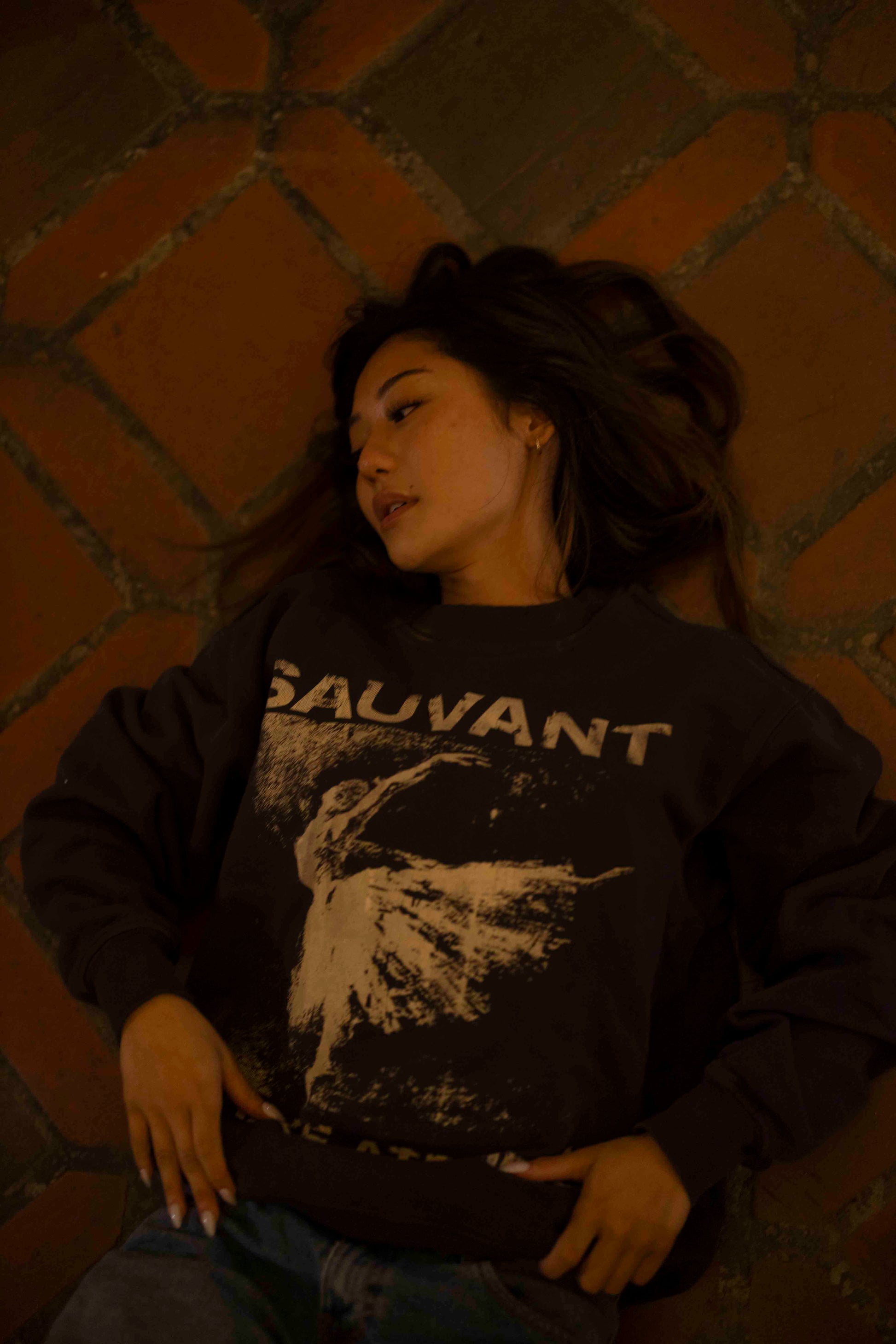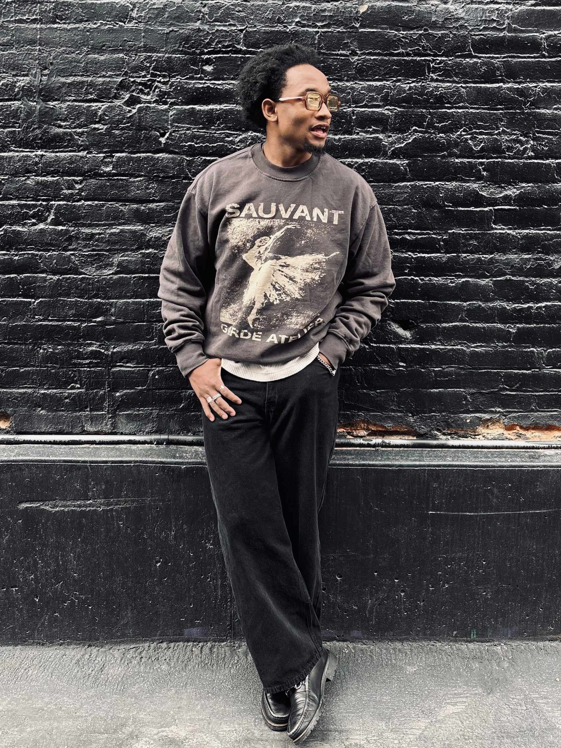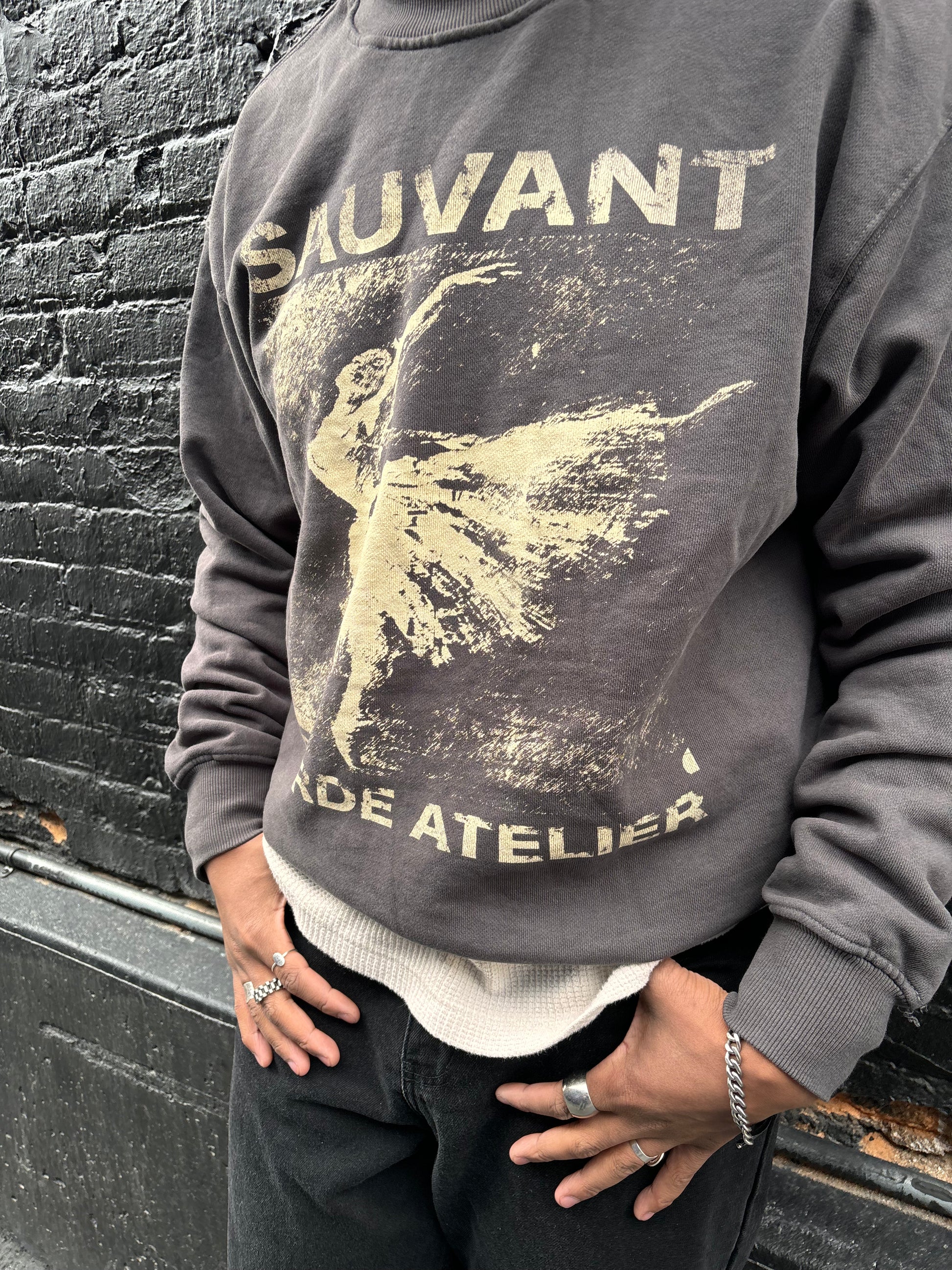 - Grey garment with off-white screenprint detail on front and back of sweater